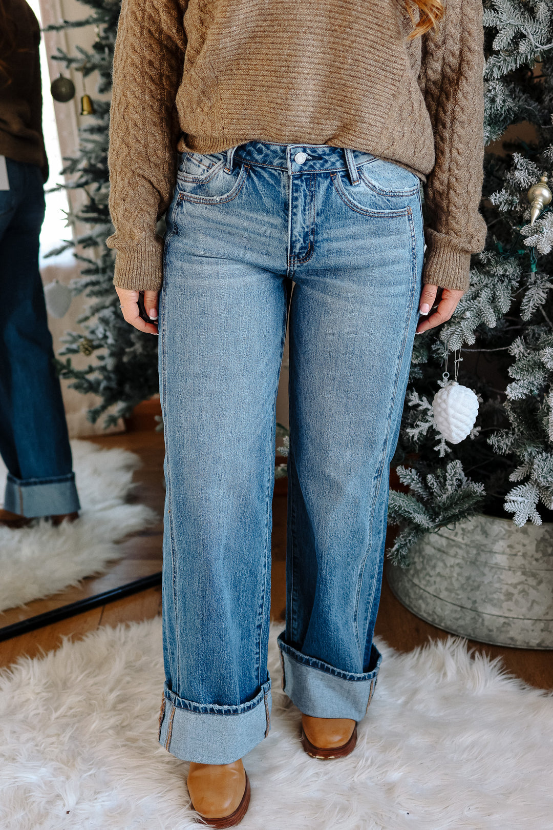 RISEN: Zane Medium Wash Crop Wide Leg Jeans
