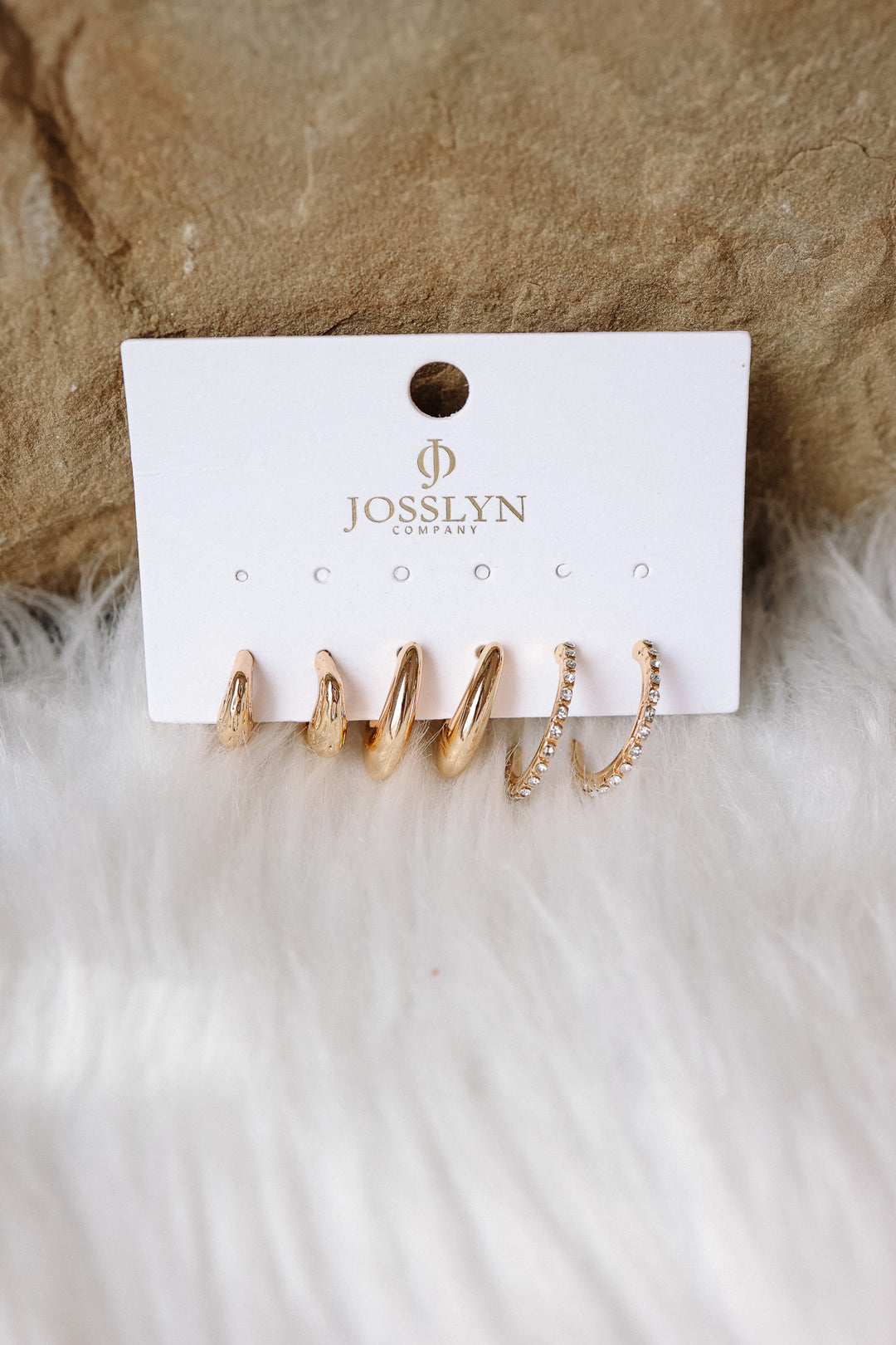 Tapered Rhinestone Huggie Hoop Trio Earring