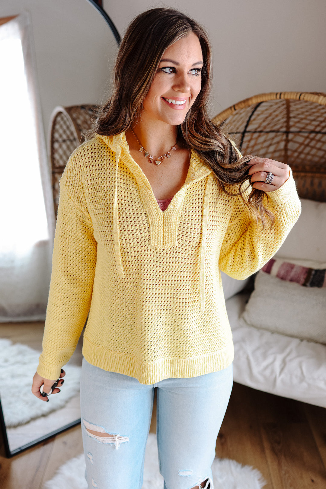 Aria V-Neck Knit Hoodie Sweater - Butter