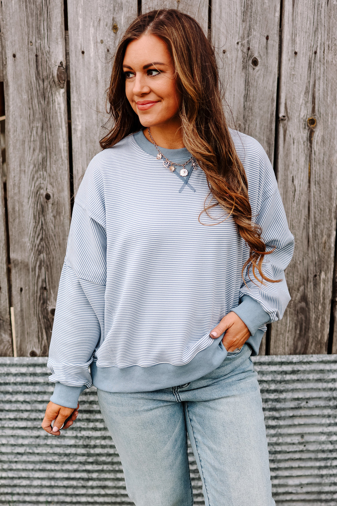 Nixie Striped Drop Shoulder Sweatshirt - Ivory/Blue