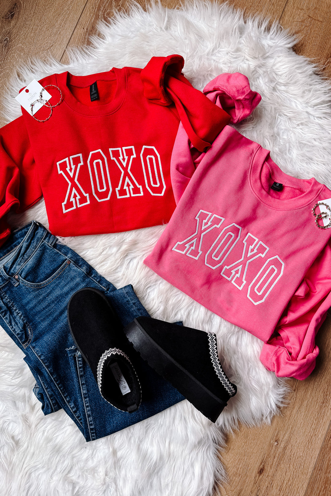 Embroidered XOXO Graphic Sweatshirt - Multiple Colors