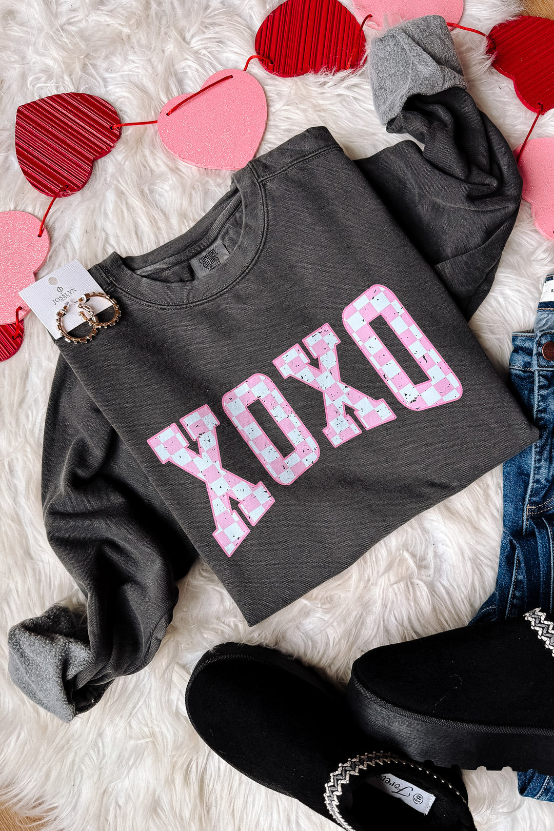 Checkered XOXO Crewneck Sweatshirt - Pepper