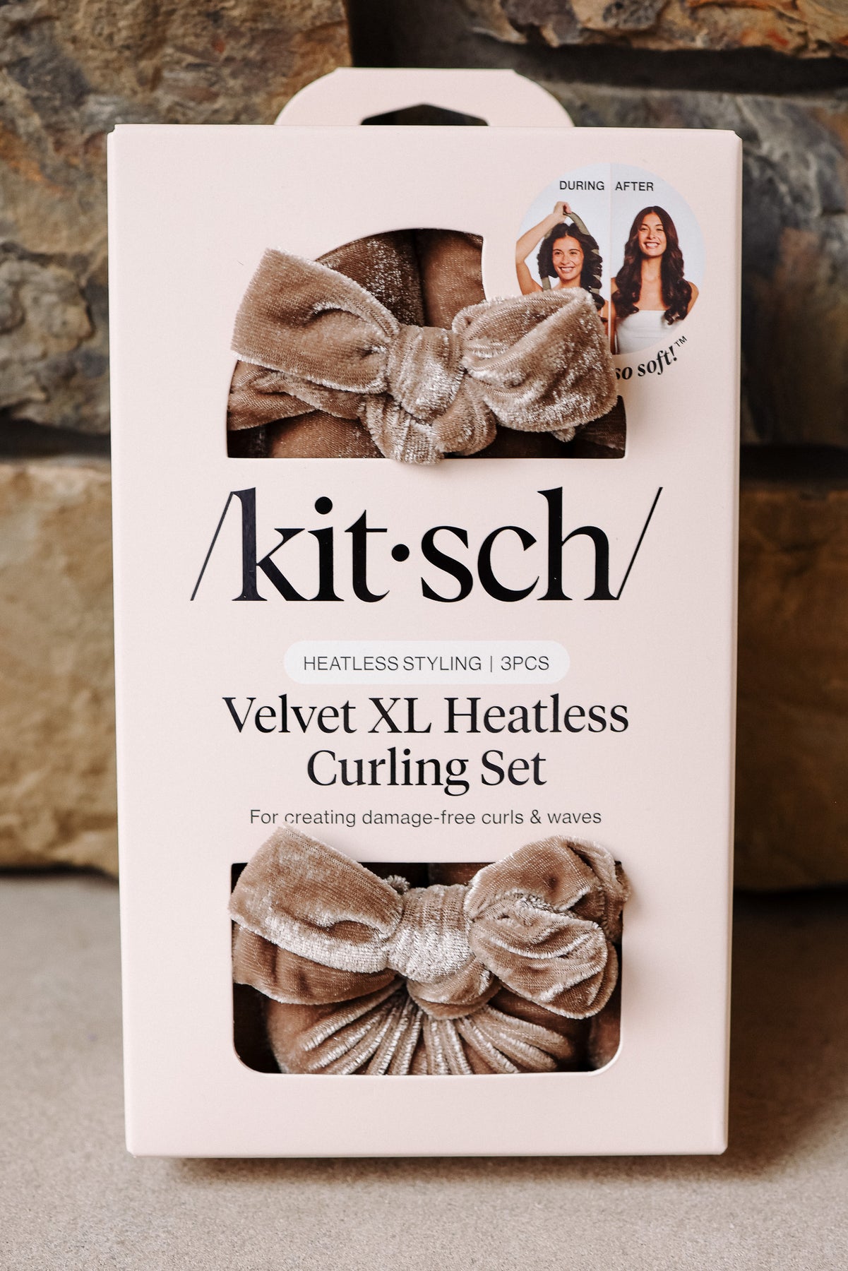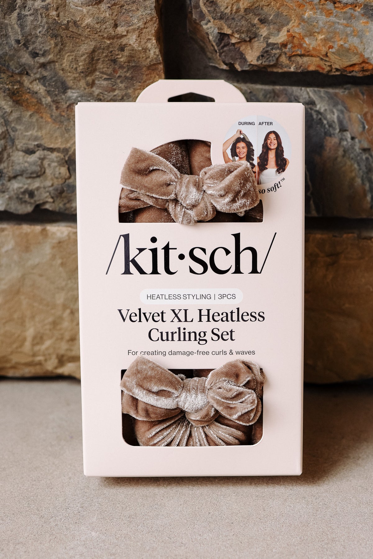 Loose curls and effortless waves-without the heat damage! The Kitsch Velvet XL Heatless Curling Set styles your strands for a fresh-from-the-salon look. It’s soft velvet that gently and securely sets your strands, this extra-long curling rod and bow scrunchie set is crafted for comfortable day and overnight wear. Just wrap, set, and style for bouncy, voluminous curls.