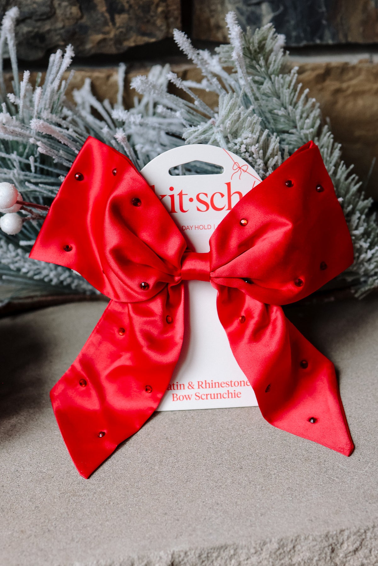 Silky Shine, Sparkling Finish Add instant glam to your hair routine with the Kitsch Satin & Rhinestone Bow Scrunchie – Red. Featuring a rhinestone-studded bow and crafted from OEKO-TEX® certified satin, this chic accessory brings a touch of festive elegance while helping to reduce frizz, breakage, and tugging. Whether you're dressing up for a special occasion or giving your everyday ponytail a polished twist, this scrunchie is gentle on all hair types and made with sustainability in mind. It’s the perfect blend of function, comfort, and sparkle.