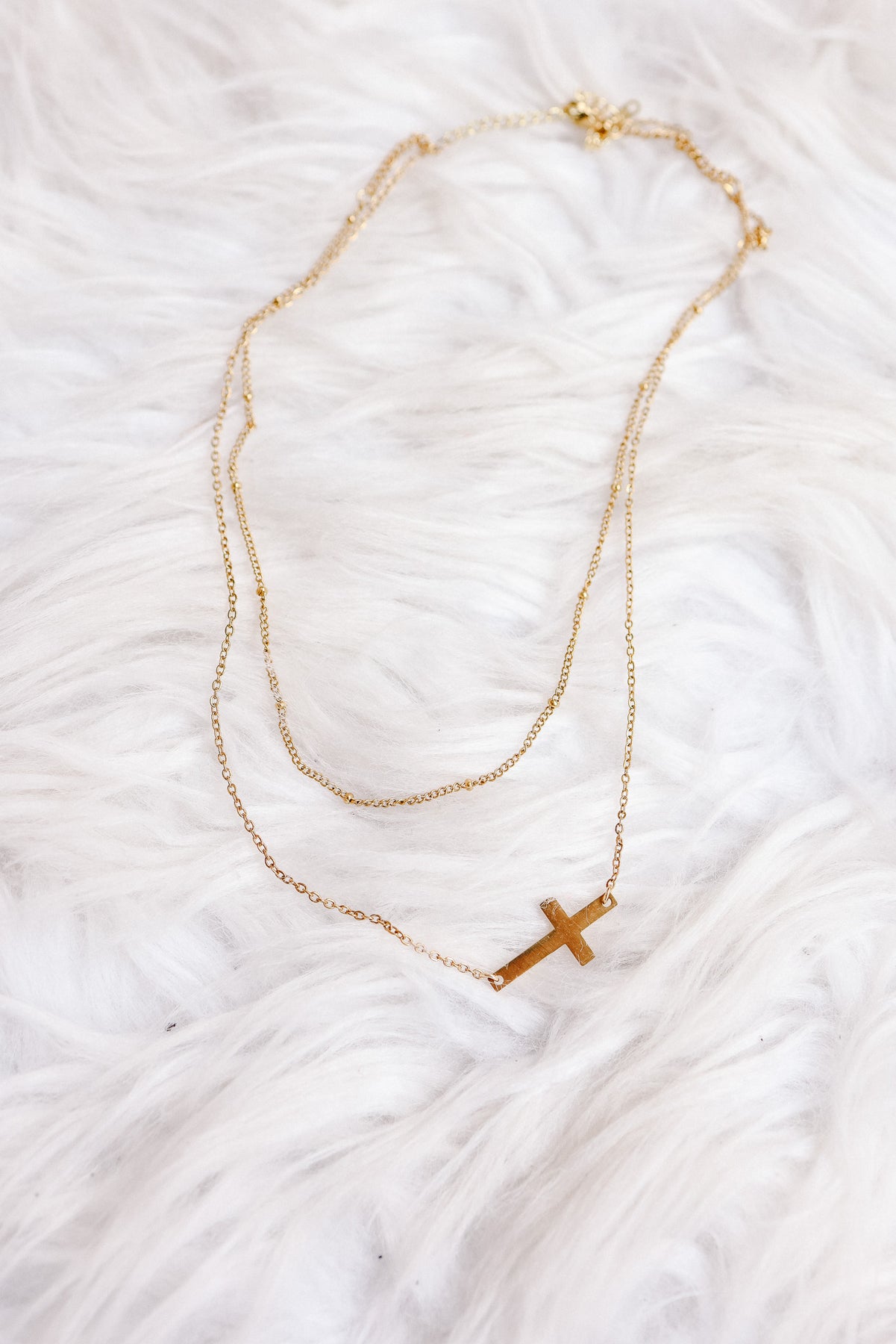 Layered Cross Necklace, a timeless symbol of faith. This necklace features a beautifully detailed double layer ball chain cross pendant.