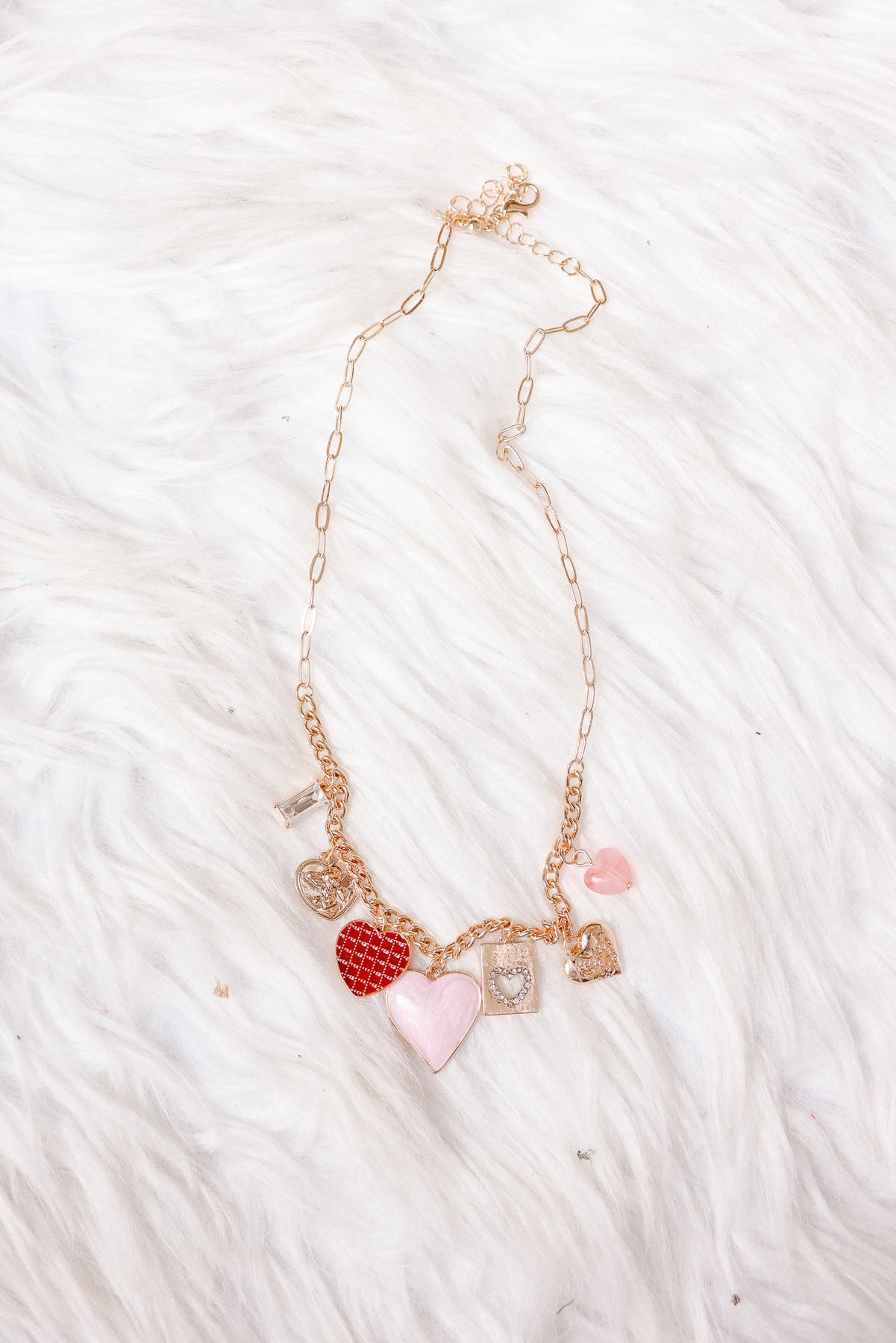 Hearts Checker Rhinestone Charm Necklace