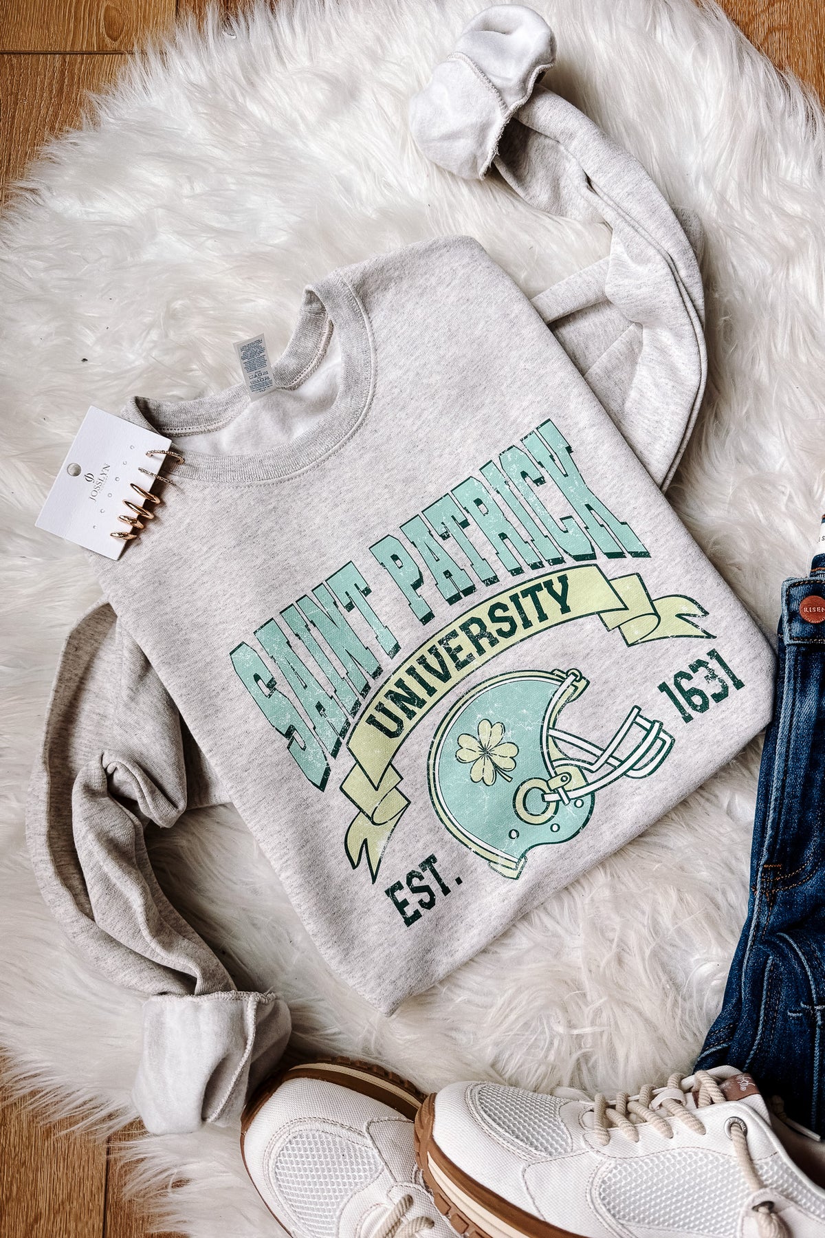 Football Helmet St. Patrick University Graphic Sweatshirt - Oatmeal He