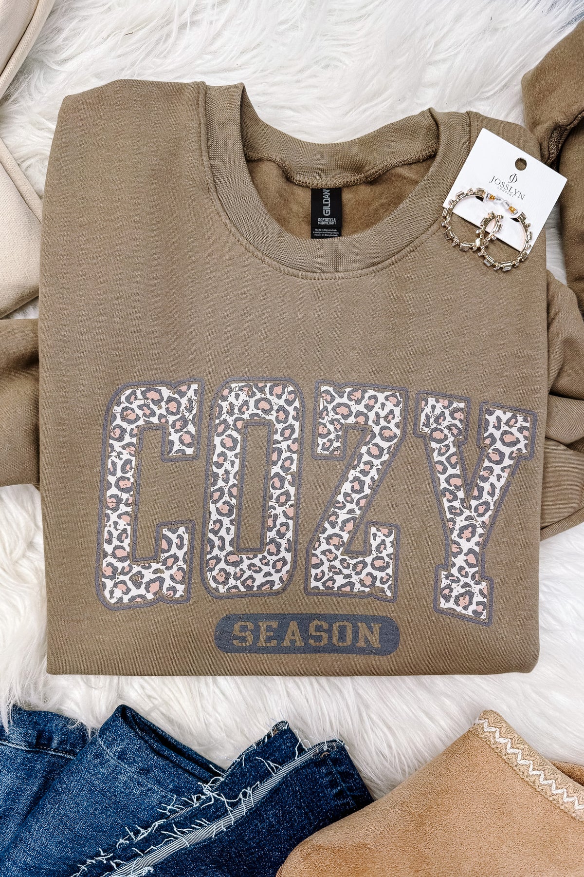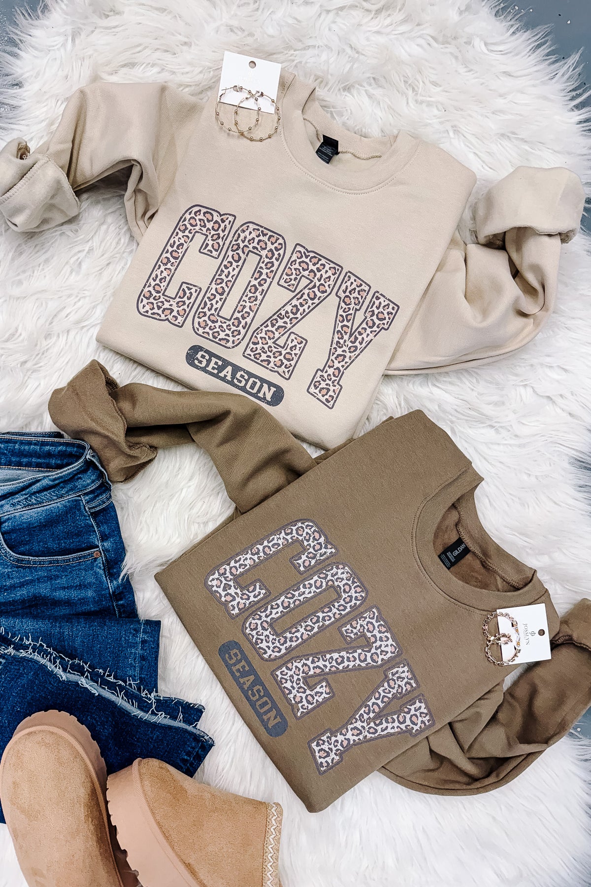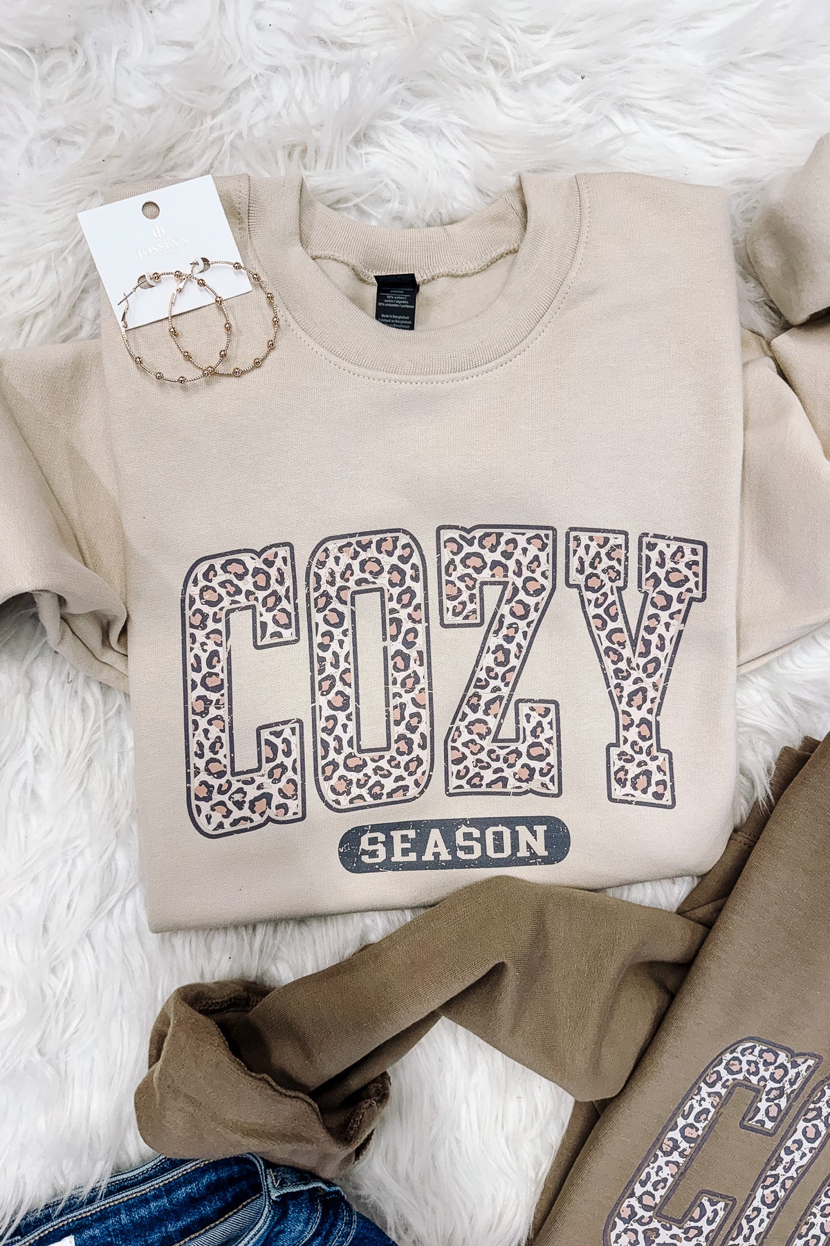 Leopard Cozy Season Crewneck Sweatshirt - Brown & Sand