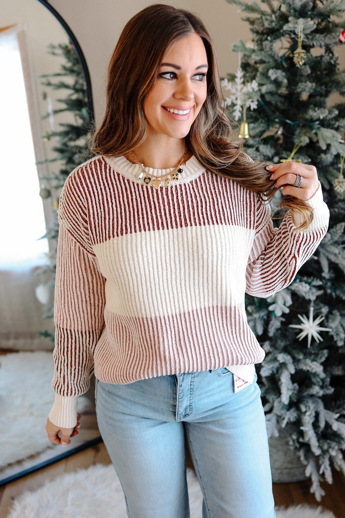 Lyndee Chenille Colorblock Sweater - Burgundy/Pink
