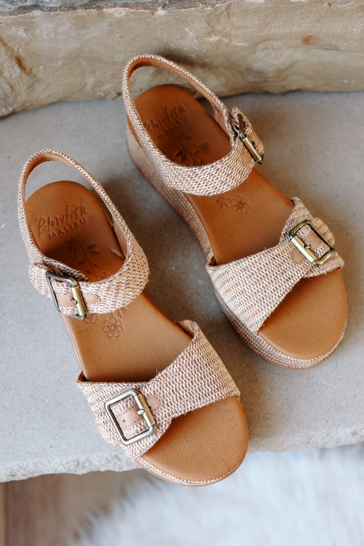 Breezy style meets all-day ease in the Blowfish Malibu Magical platform sandal. Designed with wide faux leather straps, chic metal buckles, and a cork-textured platform, this sandal brings breezy, beach-inspired vibes to your everyday look. The adjustable slingback strap and open toe design provide a comfortable fit, while the textured platform heel adds just the right lift.