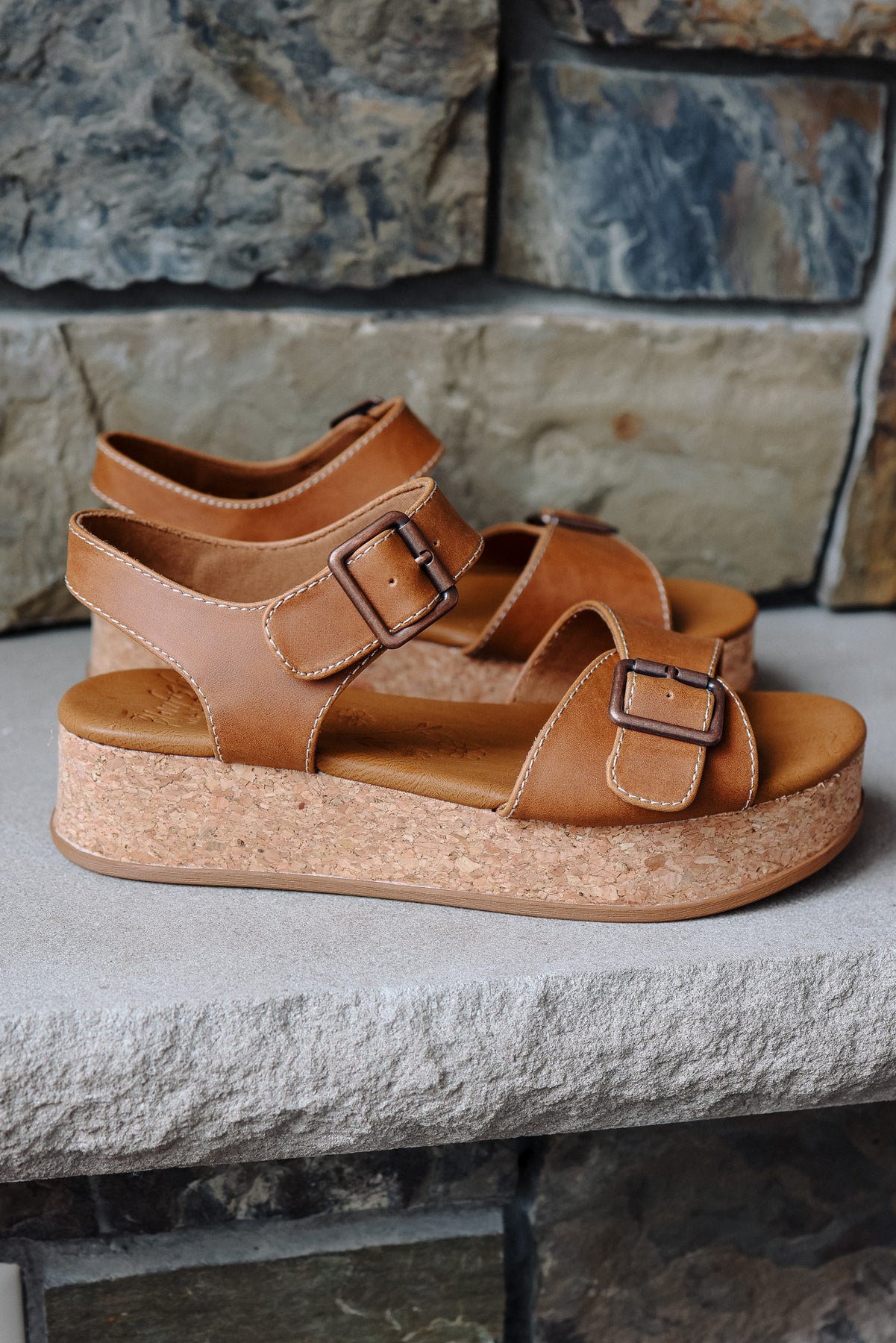 Breezy style meets all-day ease in the Blowfish Malibu Magical platform sandal. Designed with wide faux leather straps, chic metal buckles, and a cork-textured platform, this sandal brings breezy, beach-inspired vibes to your everyday look. The adjustable slingback strap and open toe design provide a comfortable fit, while the textured