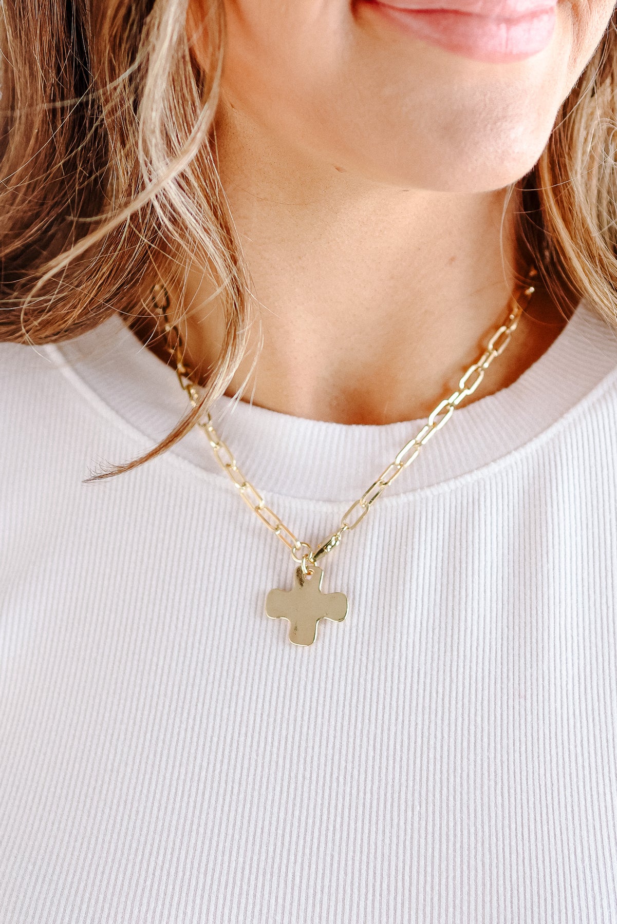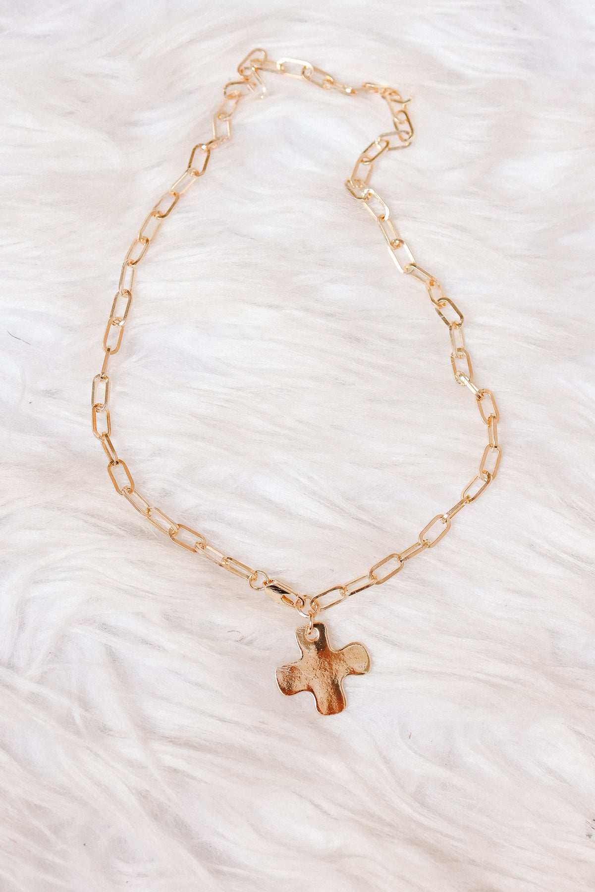 Notable Hammered Cross Necklace is a bold with a touch of artisanal charm. Featuring a striking hammered cross pendant, this necklace showcases a textured, handcrafted look that adds depth and uniqueness.