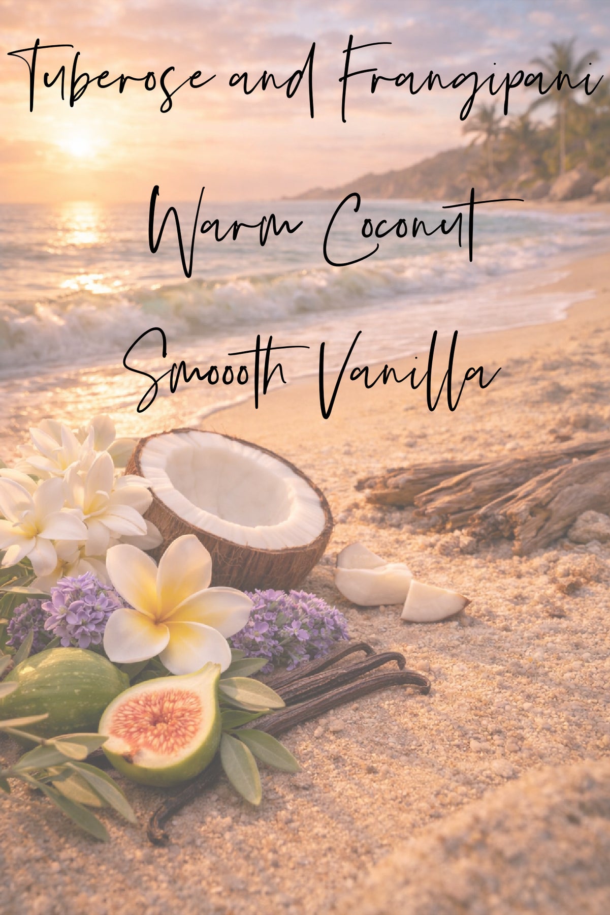 Tuberose and frangipani bloom with sultry richness, lifted by creamy coconut and soft heliotrope, and grounded with velvety vanilla. Rio swirls with the lush scent of tropical gardens and sun-drenched beaches, releasing a radiant and balmy bouquet. Rich and enveloping, each note blossoms with a layered warmth that draws you in.
