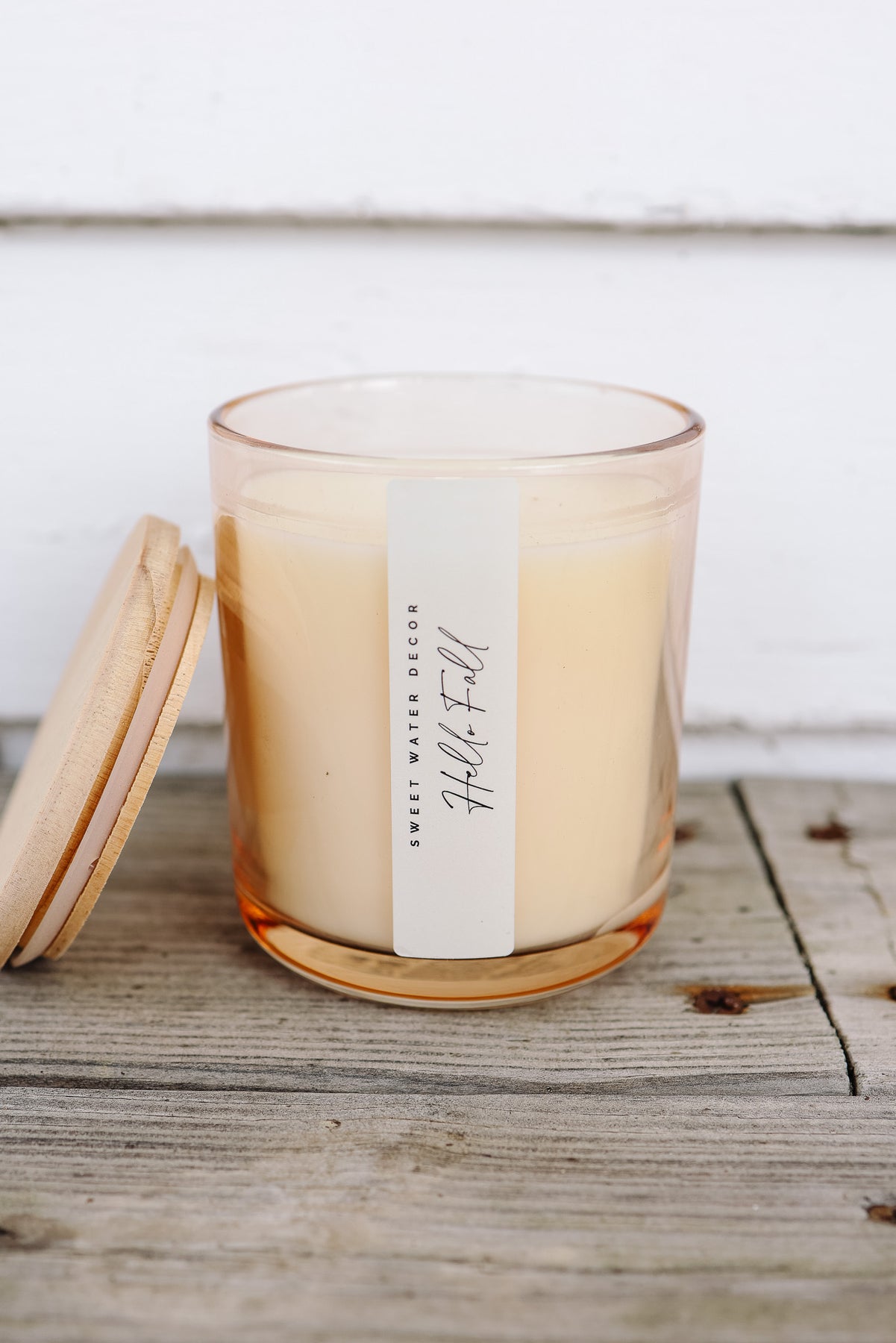 Warm and spicy scent notes perfectly capture the Autumn season, and our tinted glass jar is a stunning Fall decor addition.