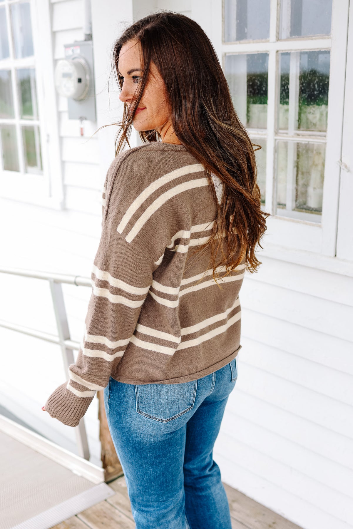 Jane Notch Neck Striped Sweater