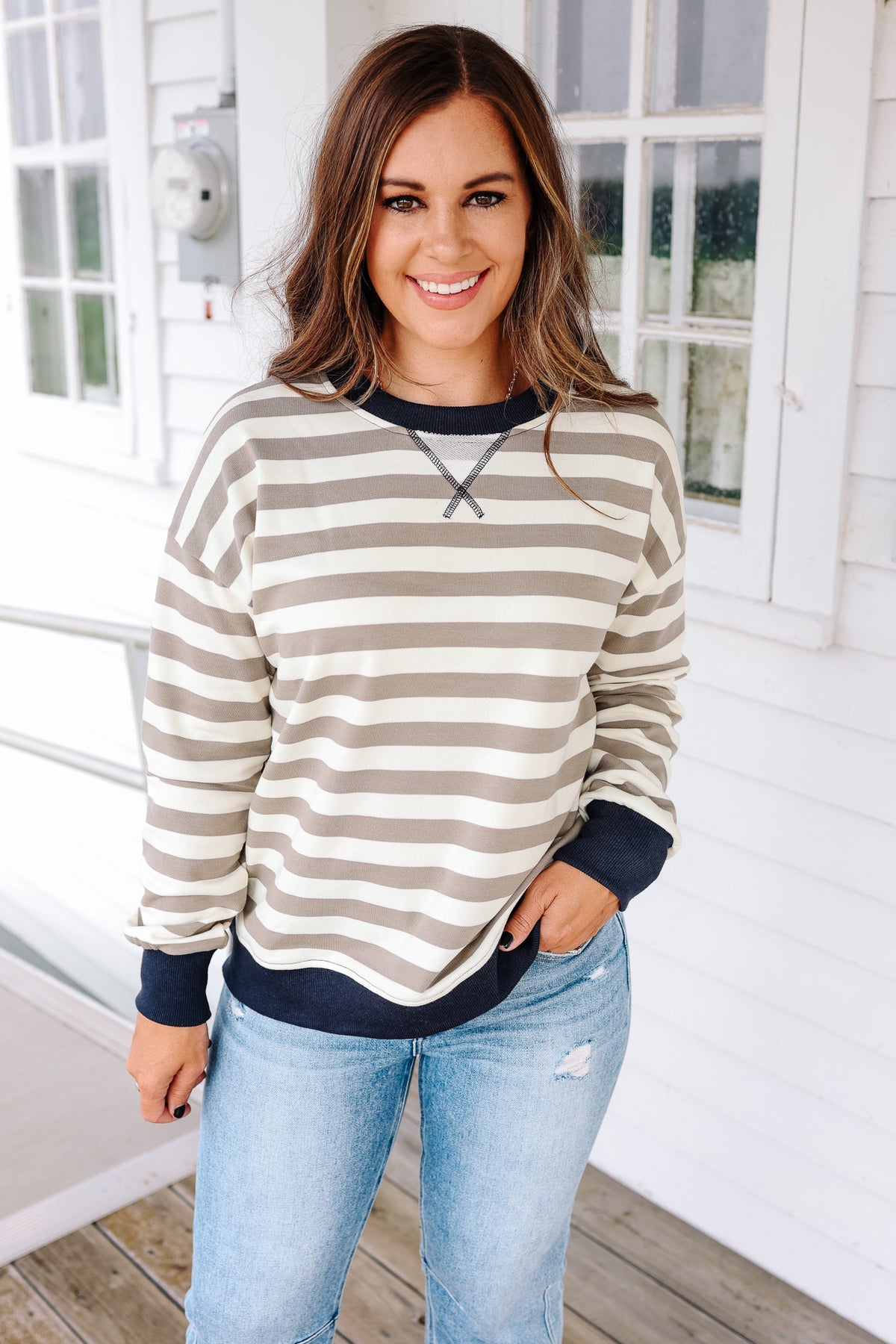 Wren Color Contrast Stripe Sweatershirt - Olive/Navy