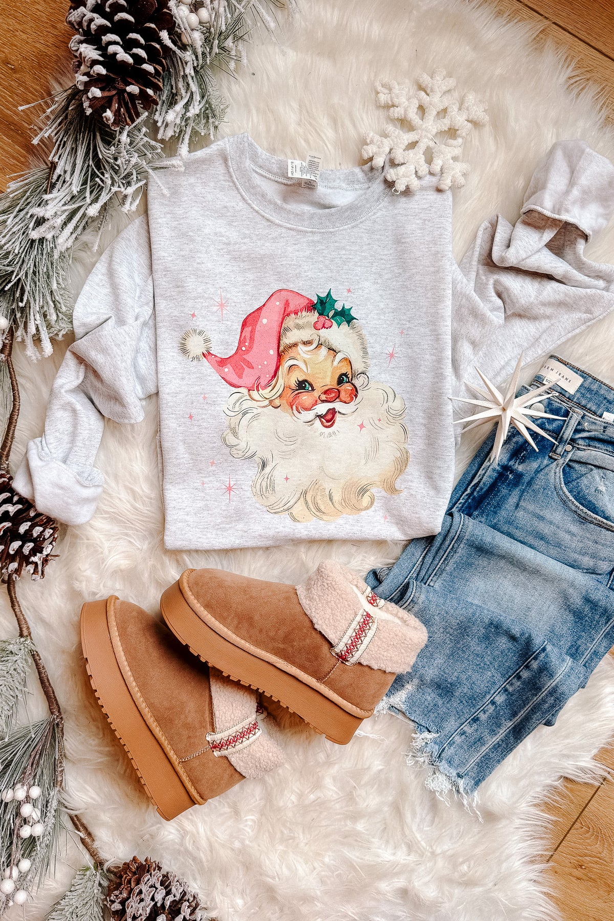 Pink Retro Santa Crewneck Sweatshirt - Ash Grey