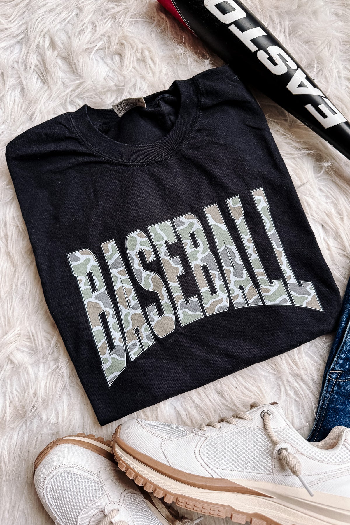 Camo Baseball Graphic Tee - Black