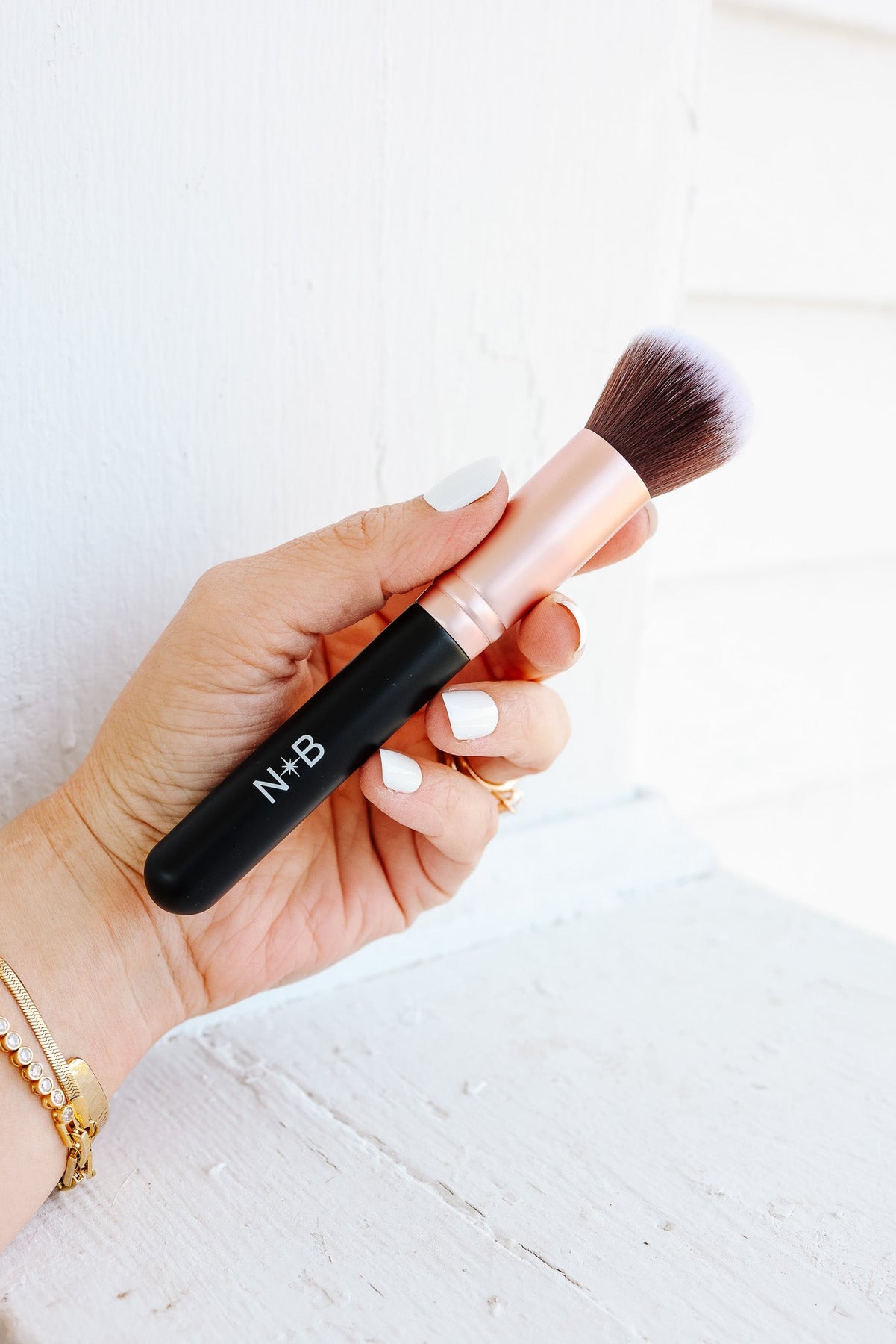 ย Achieve complexion perfection with our Kabuki Face & Body Brush. Designed with densely packed bristles, this brush effortlessly buffs and blends powder, liquid, or cream products for a flawless finish. Its compact size and ergonomic handle allow for precise application, ensuring seamless coverage every time. Elevate your tanning routine with this versatile and luxurious brush, perfect for achieving a flawless blend effortlessly.