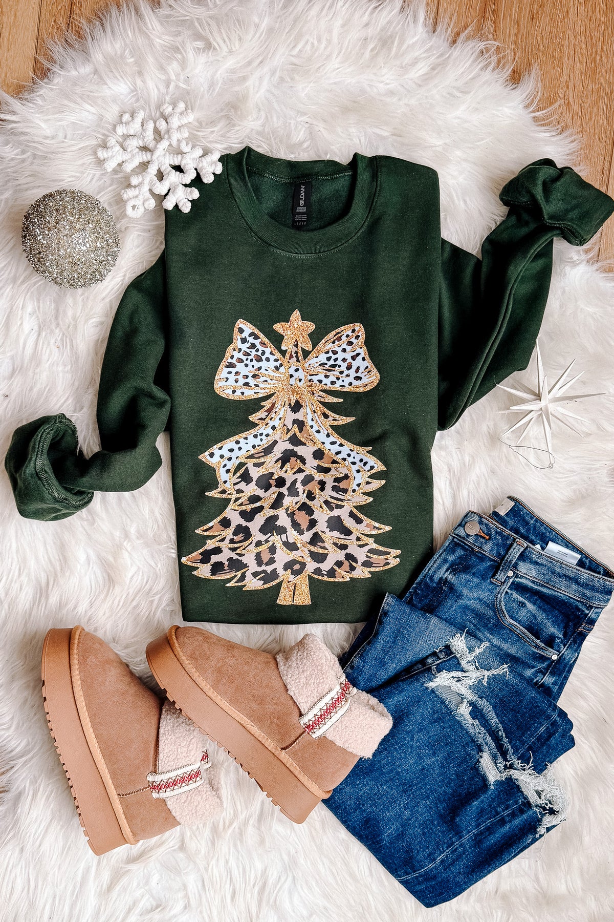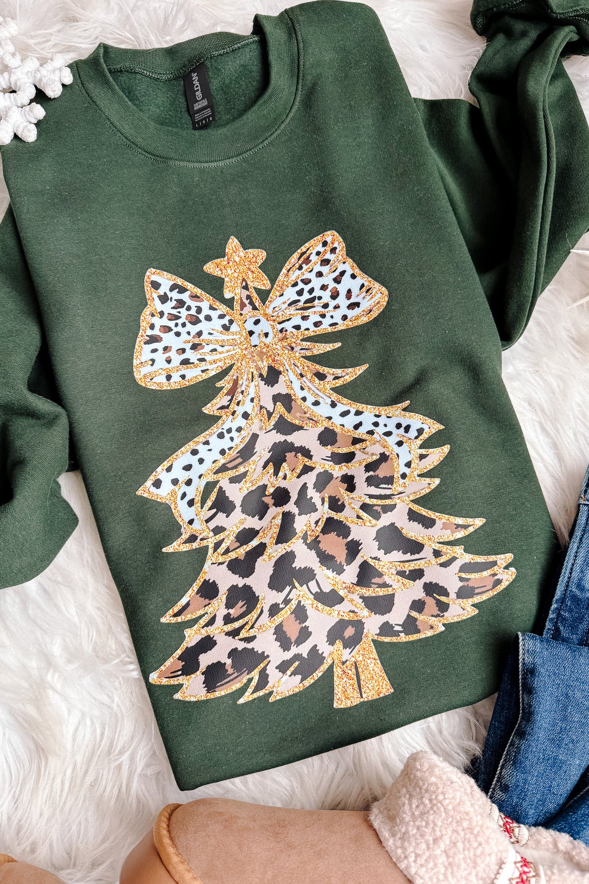 Leopard Luxe Tree Graphic Sweatshirt - Forest Green