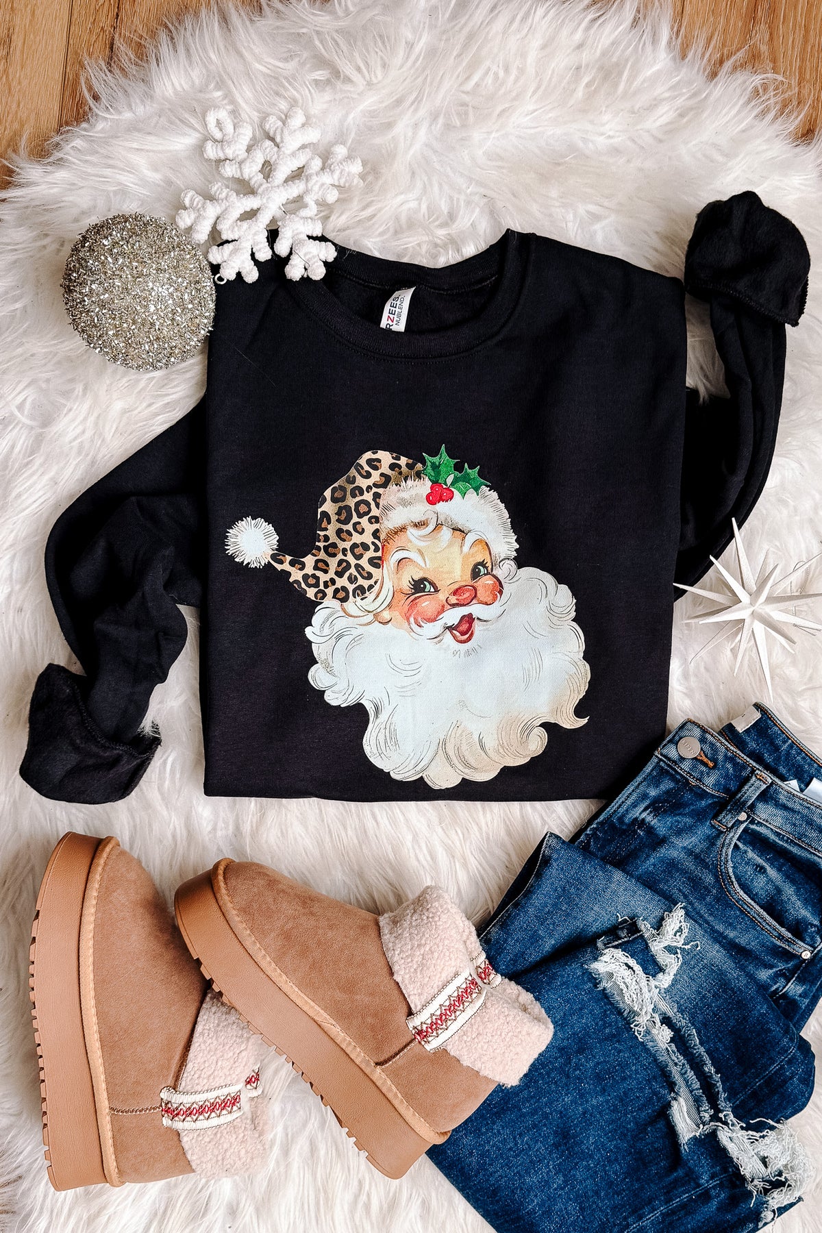 Leopard Retro Santa Graphic Sweatshirt - Black