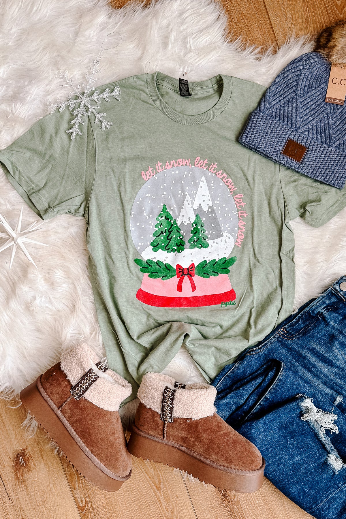 "This tee lets you take the snow with you wherever you go! Perfect for winter lovers and passionate travelers alike. Get ready to be the envy of all your friends with this unique 'Let it Snowglobe' tee. Snow much fun!"