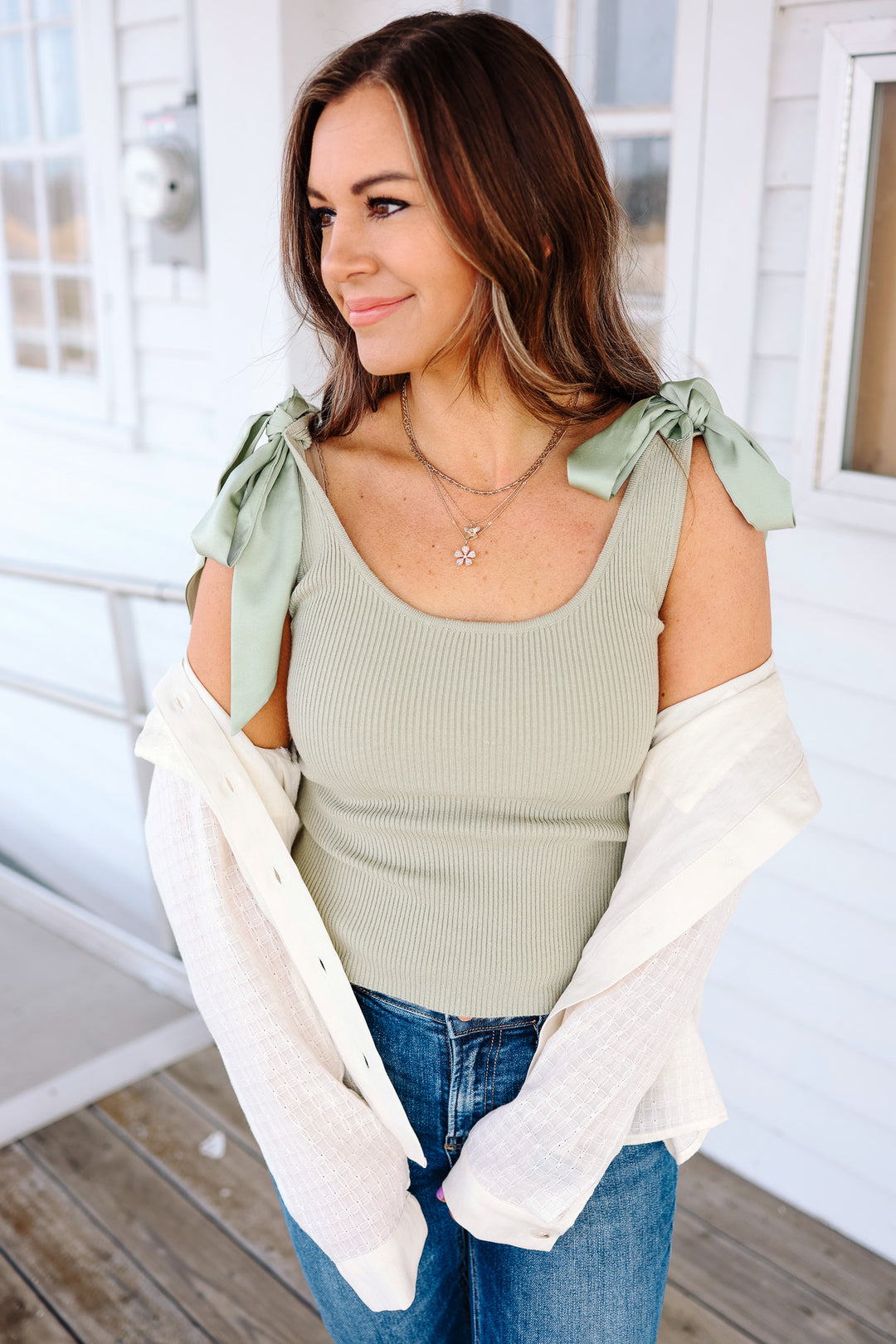 • SHOULDER SATIN TIE (shoulder tie is decorative, tank top does not rely on tie to wear.)
