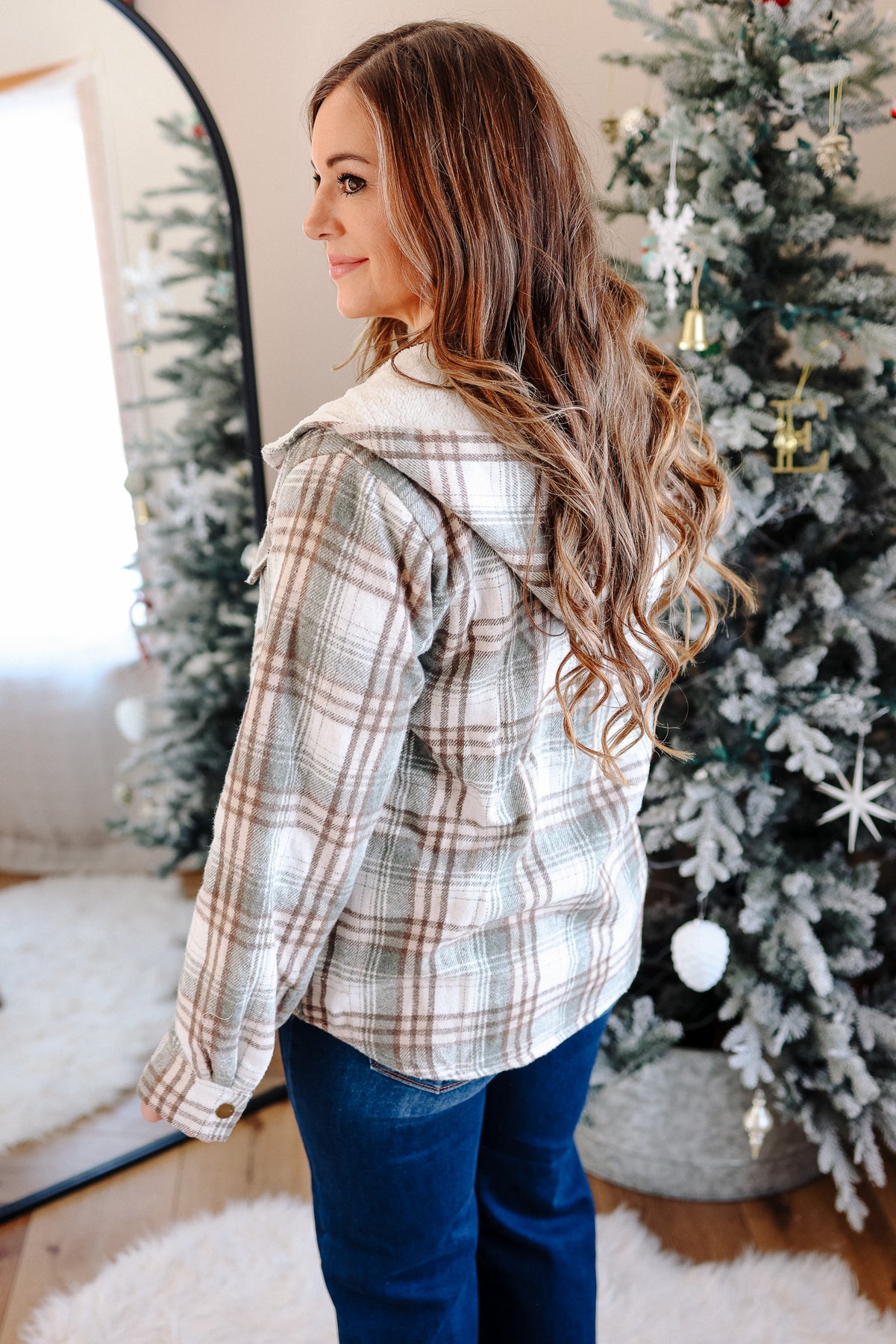 Taya Sherpa Lined Plaid Hoodie Jacket