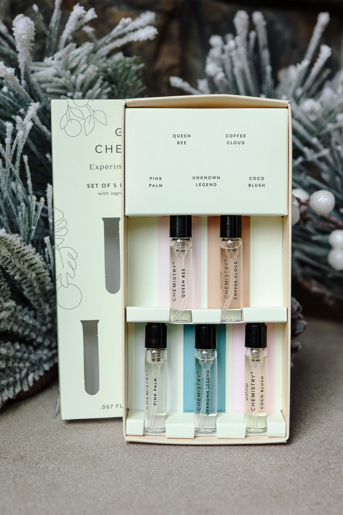 Discover Good Chemistry’s best-selling fragrances with this curated collection of mini Eau de Parfums. With each vial containing enough for at least 5 wears, the possibilities are endless.