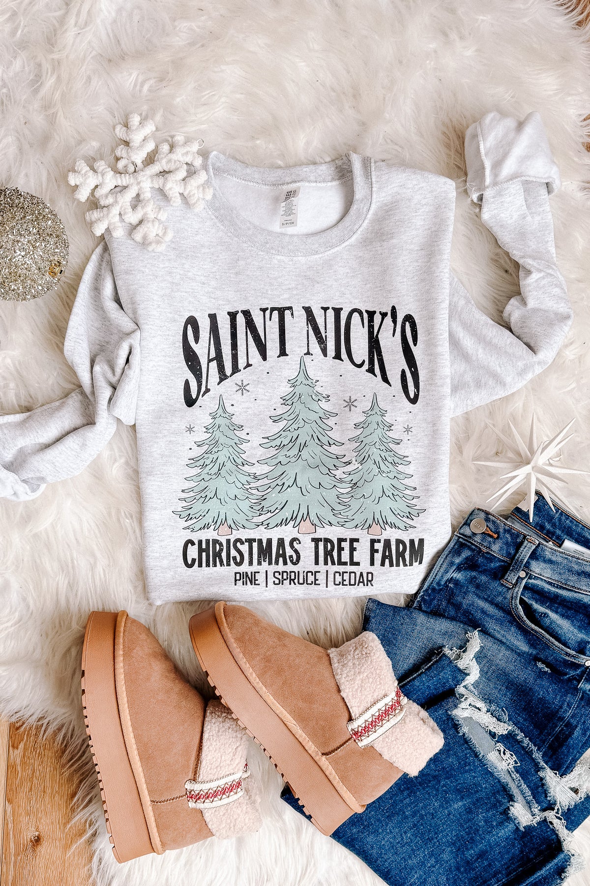 Saint Nick's Tree Farm Crewneck Sweatshirt - Ash Grey