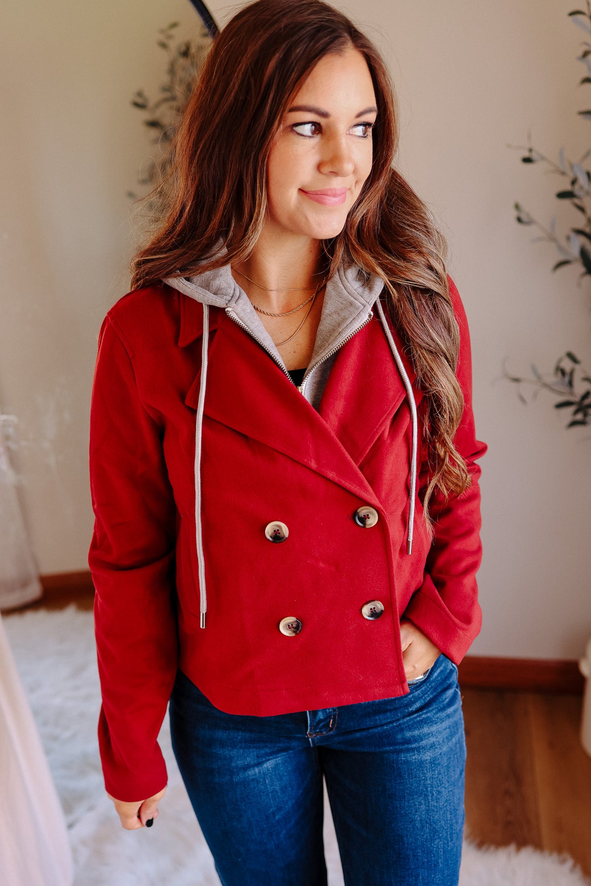 Amelia Hooded Crop Jacket - Crimson Red
