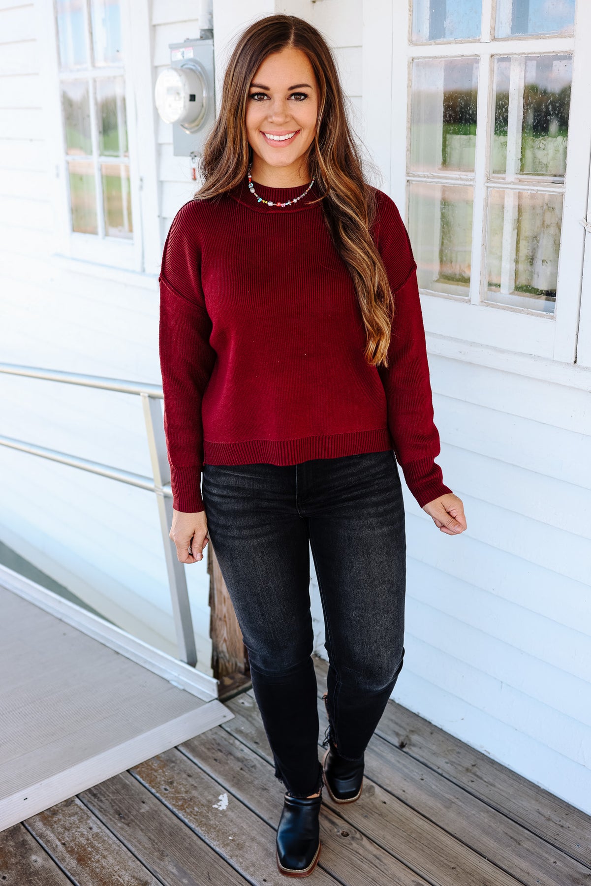 Linden Ribbed Knit Sweater - Burgundy