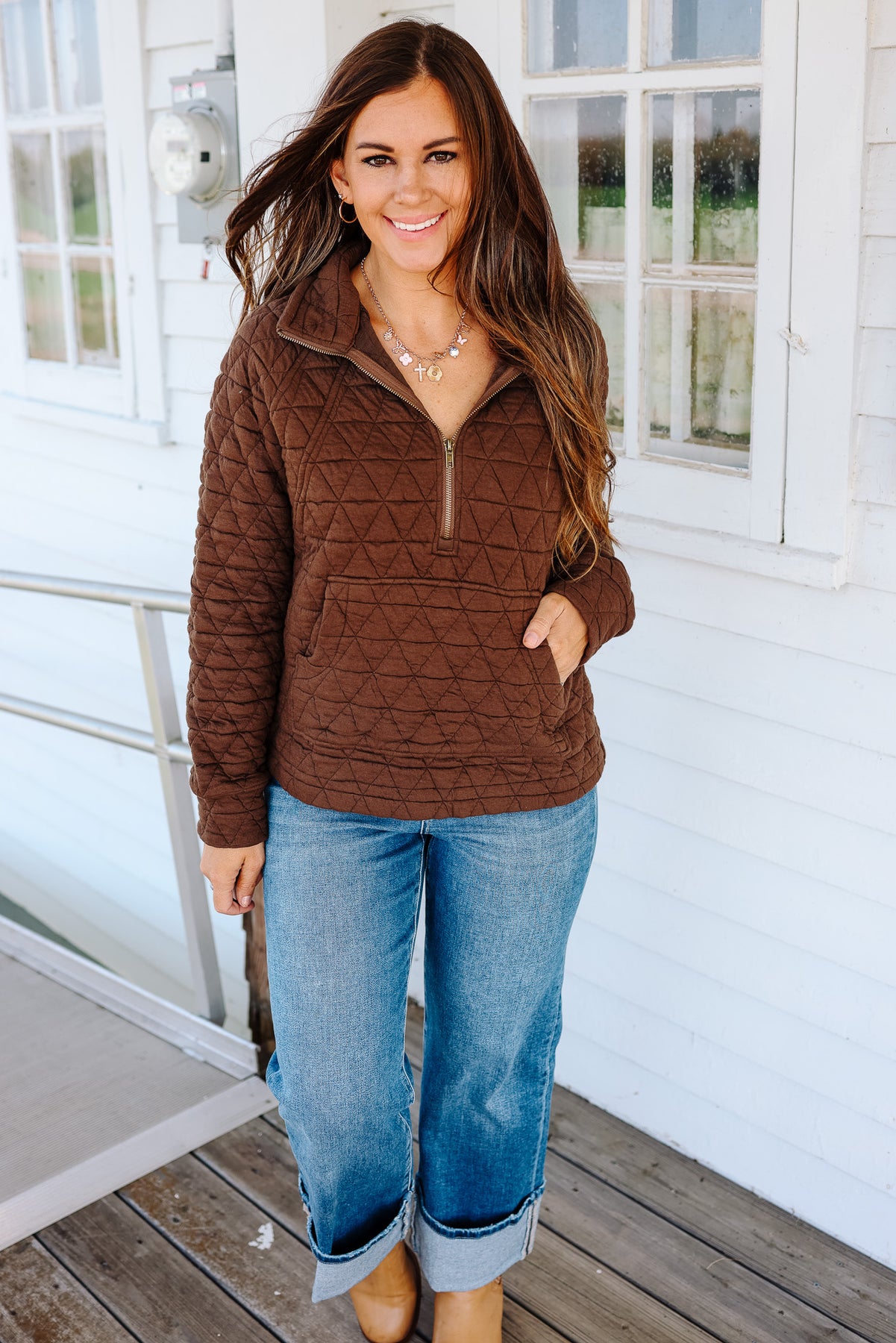 Quinn Half Zip Quilted Sweatshirt - Brown