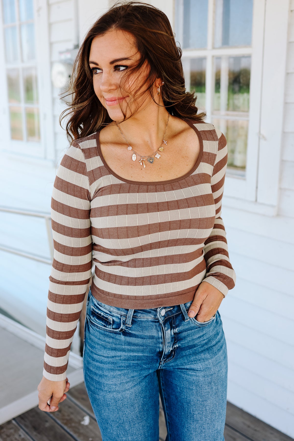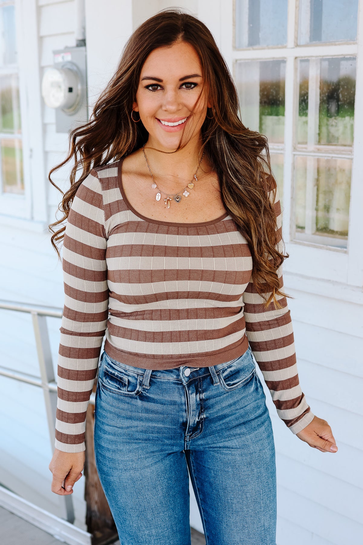 Tinx Seamless Stripe Top - Taupe/Ivory