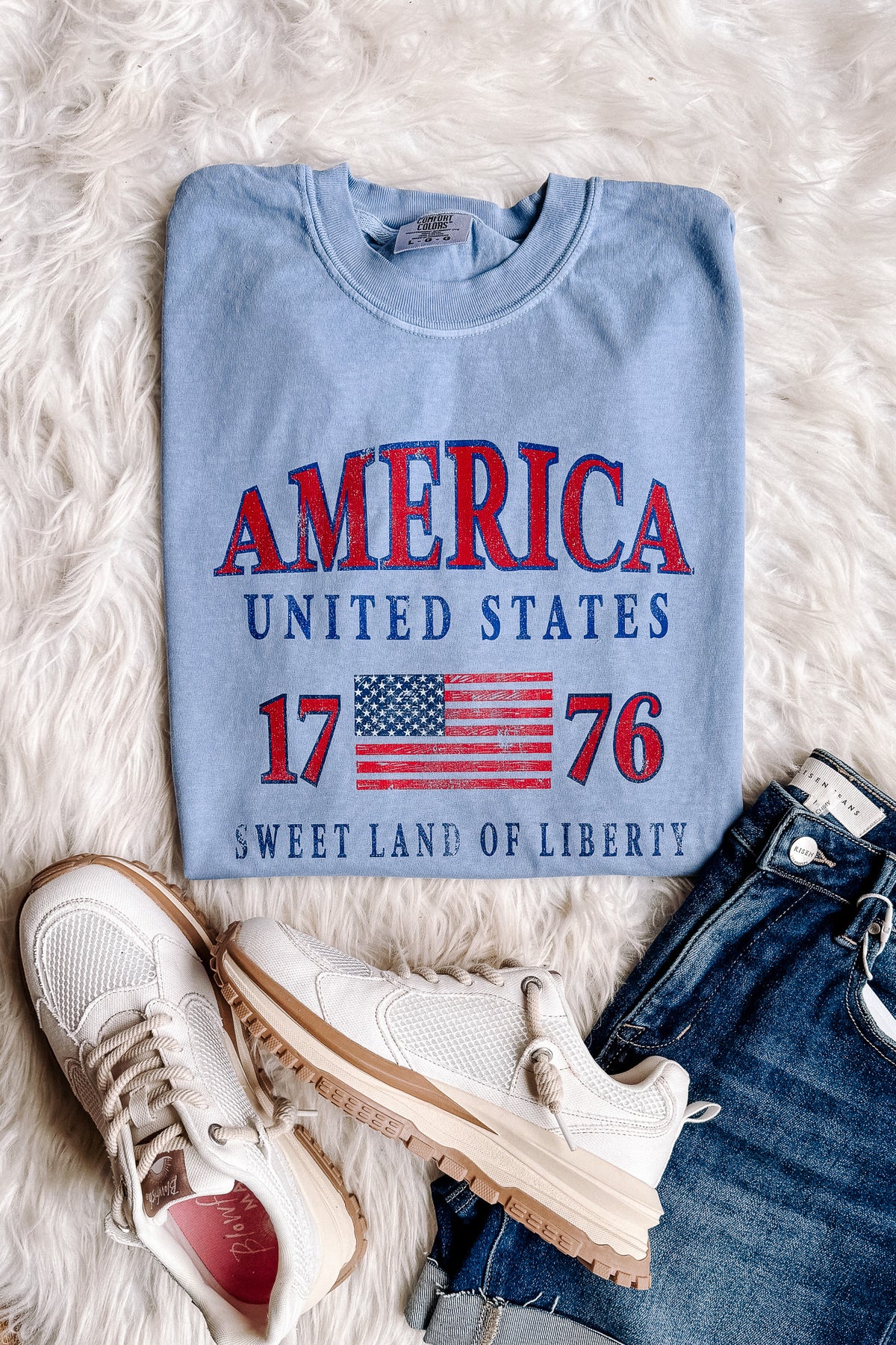1776 Sweet Land of Liberty Graphic Tee - Washed Denim