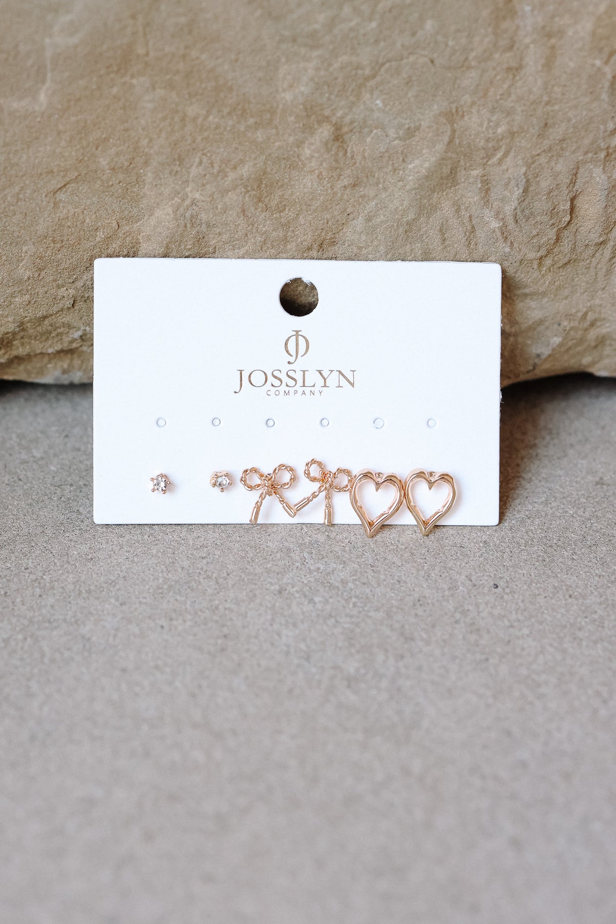 Bow Heart Charm Stud Trio Earrings, a delightful blend of elegance and charm. This set of three stud earrings features intricately designed bow and heart charms, creating a stylish and versatile ensemble.